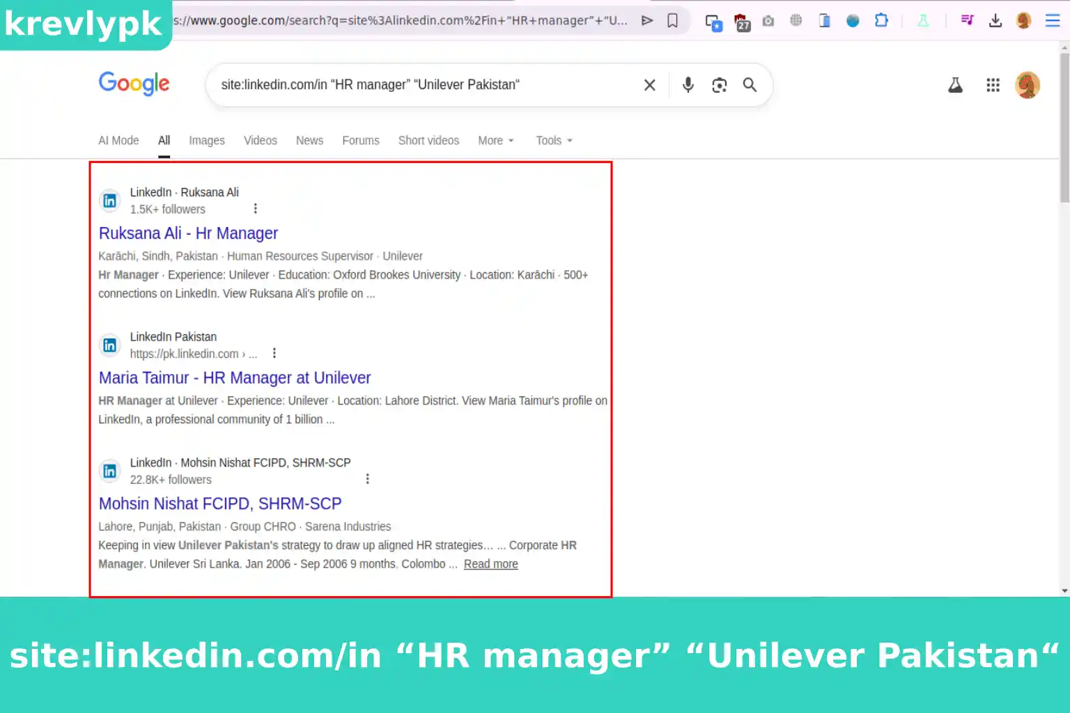 I am going to share a photo of my search for linkedin HR manager at Unilever Pakistan.